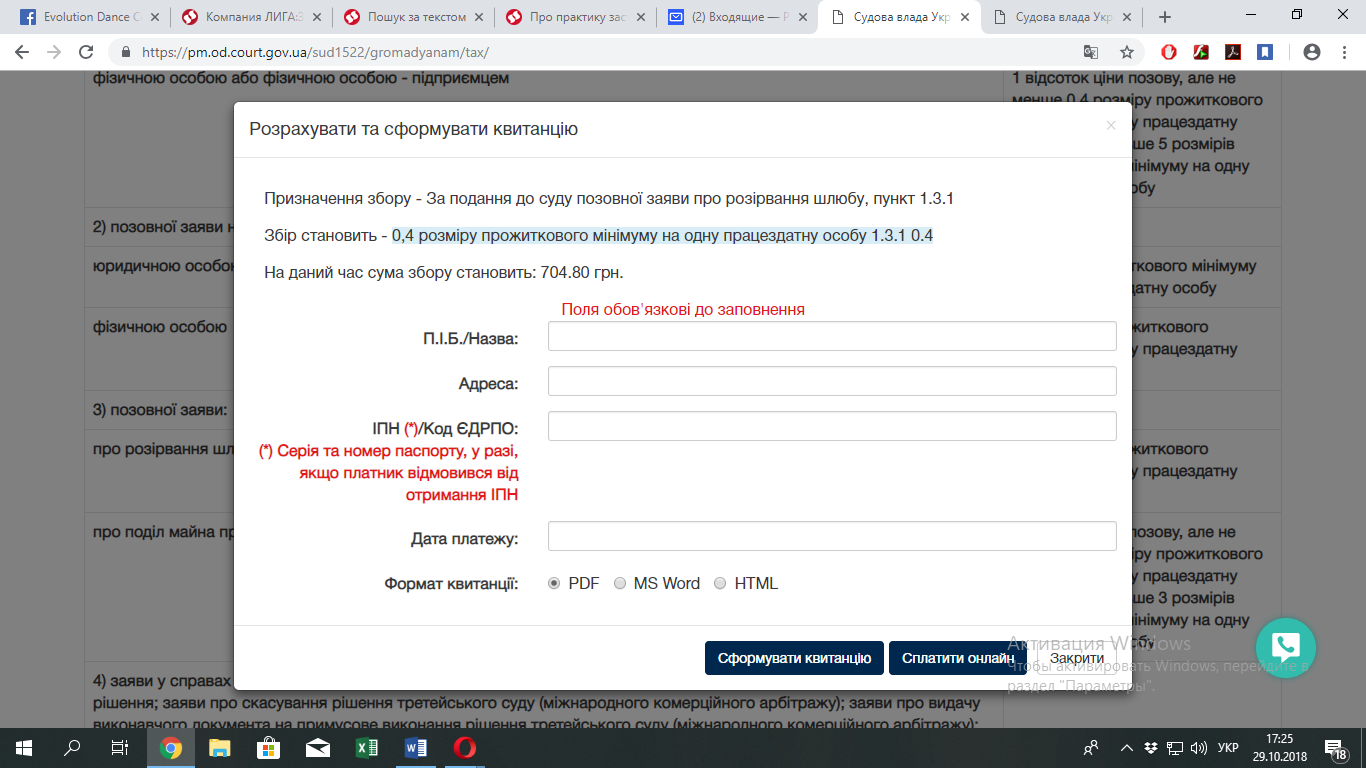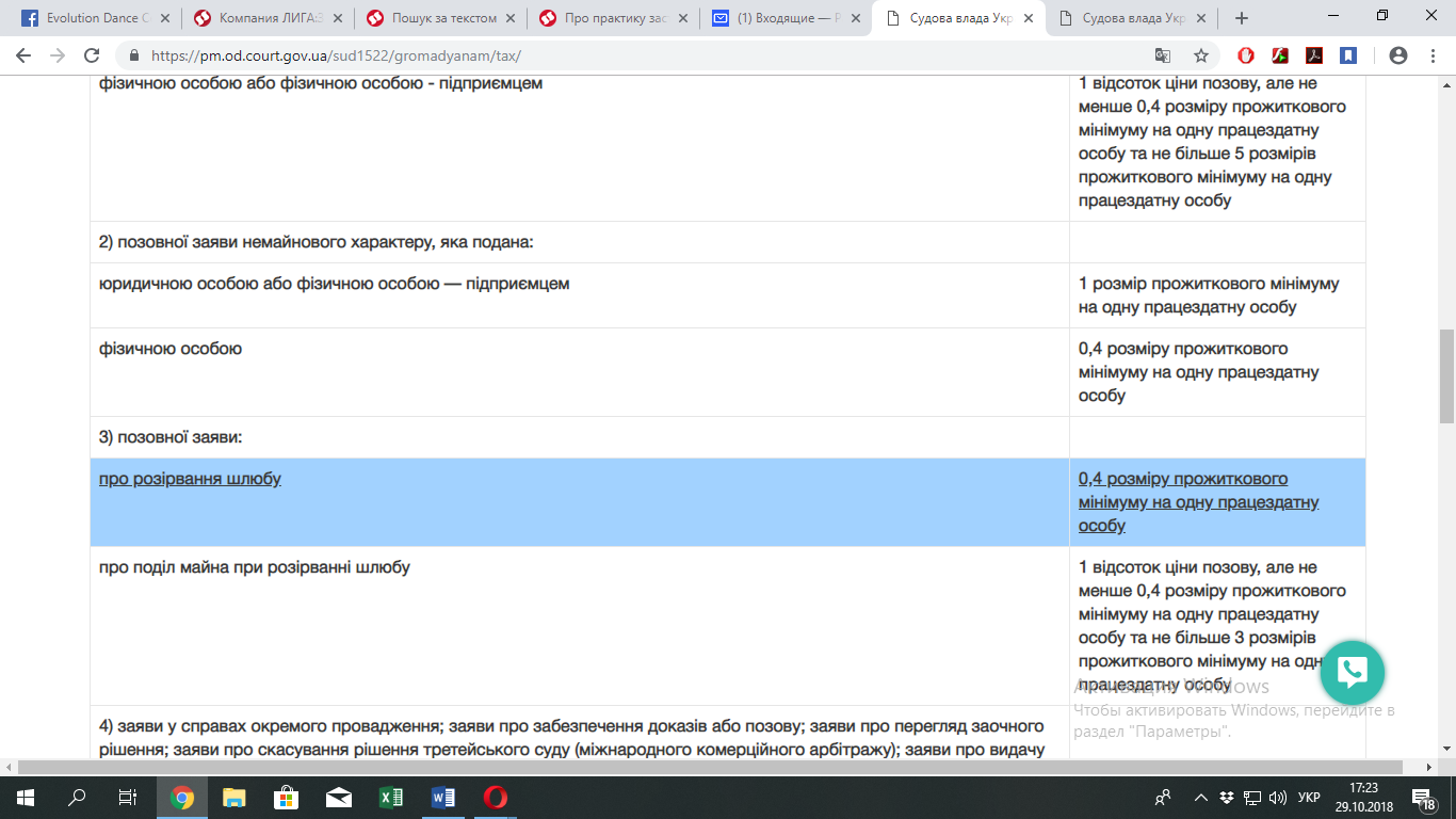 Выбрать пункт про оплату судебного сбора за расторжение брака